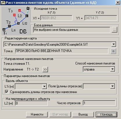 Диалог Расстановка пикетов вдоль объекта (данные из БД)