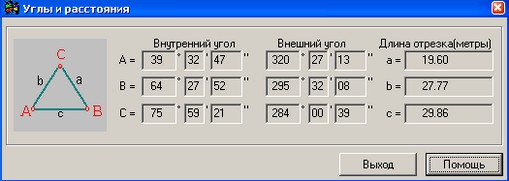 Для копирования в буфер обмена значения угла надо на любом из полей соответствующих компонентов содержащих значения углов вызвать контекстное меню правой кнопкой мыши и выбрать строку «Копировать». Значение угла будет скопировано в буфер обмена в формате: градусы минуты секунды, через пробелы.