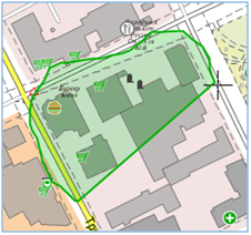 Intersecting the area. When drawing an area from right to left, map objects that intersect the area are highlighted. The selection area of objects is painted green.