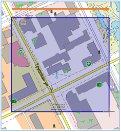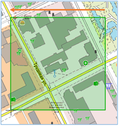 Mark by a rectangular fragment To activate the drawing of the rectangular fragment it is necessary to press Shift and the left mouse button and hold it, start moving the mouse diagonally. Automatically the area of a choice in the form of a rectangle will be formed. To end the mode release the mouse button. Moving the map image in this mode is disabled.