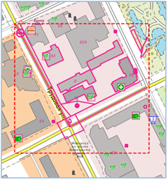 Selection of objects is carried out by area limited by a closed contour. Drawing a contour may be done in several ways: a rectangular frame, polygon and arbitrary area (lasso). Choice of a drawing's mode is carried out automatically and depends on actions of the user. When drawing an area for selecting objects from left to right, the «Select only internal» mode is set. If there are already objects selected by area on the map, then the selection by area will be performed in the LISTS ADDITION mode - new objects will be added to the previously selected ones. To cancel the current selection of objects, you must press the «Undo marking» button on the main panel or the SHIFT + ESC key combination. If the CTRL key was pressed while clicking the button on the panel, then the selection by the area will be performed in the LISTS INTERSECTION mode - from the previously selected objects, only those that fall into the new area will remain. If the CTRL and SHIFT keys were pressed while clicking the button on the panel, then the selection by the area will be performed in the LIST CUT mode - from the previously selected objects, those that fall into the new area will be excluded (will be unhighlighted).