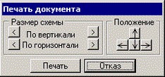 На экране появится сформированная схема, ограниченная прямоугольной габаритной рамкой. Рамка показывает, какая часть схемы будет помещена в отчет. Одновременно на экране появляется диалог Печать документа.
