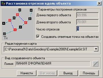 В группе Параметры построения отрезков указана длина выбранных объектов. Необходимо ввести число отрезков, на которое будут разбиты выбранные объекты.