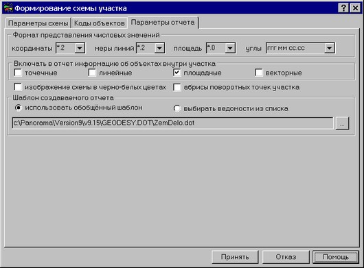 Все форматы числовых значений одновременно устанавливают формат заполнения полей в отчете и формат вывода соответствующих подписей  на схеме. Однако в отчете имеется дополнительная возможность для управления форматом координат, мер линий, площадей и углов (Регламентируемое ключевое поле в шаблоне отчетов).