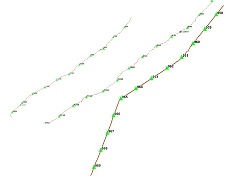 Перед формированием километровых отметок на маршрут, выполняется удаление всех относящихся к этому маршруту старых километровых отметок. Каждой созданной километровой отметке присваивается атрибутивное описание, включающее идентификатор и название маршрута, значение линейного измерения отметки и интервал, с которым была построена эта точка.