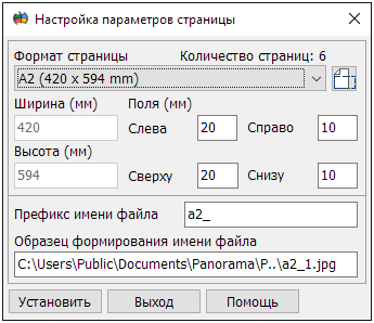 Диалог предназначен для настройки параметров страницыи выбора способа формирования имени графического файлапри потоковом сохранении изображения карты по формату страницы. В диалоге выполняется настройка условий для сохранения фрагментов карты в графические файлы.