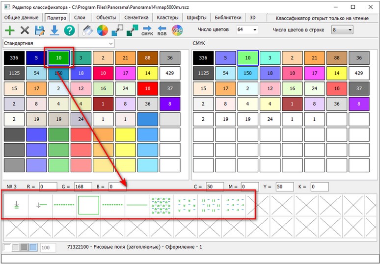 Редактирование палитры классификатора |