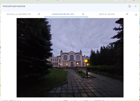 — графические файлы в форматах jpg, png, bmp, jpeg; — видеофайлы в форматах 3gp, 3g2, m1v, mov, mp4, mpa, mpe, mpeg, mpg, ogv, qt, webm; — BIM модели в формате ifc.