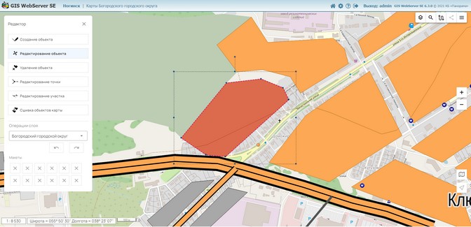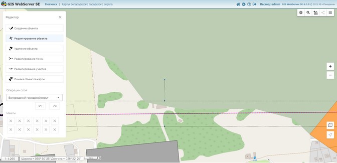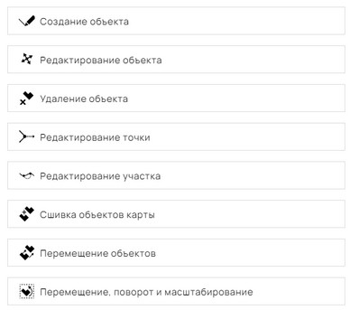 Редактор карты работает в следующих режимах: — создание; — перемещение, масштабирование, вращение; — сшивка однотипных объектов карты; — удаление.