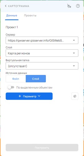 Для использования слоя в качестве источника данных необходимо выставить переключатель «Источник данных» в положение «Слой» и выбрать имя семантики для картографирования. В данном случае построение картограммы будет выполняться по указанной семантике выбранного слоя карты.