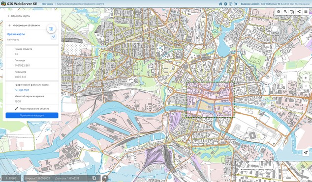 При выборе объекта в карте имя документа отображается в свойствах объекта на панели «Объекты карты» как ссылка. Для скачивания файла документа необходимо кликнуть на имя файла. Получение файла выполняется средствами web-браузера. Необходимо, чтобы в настройках браузера были разрешены всплывающие окна.