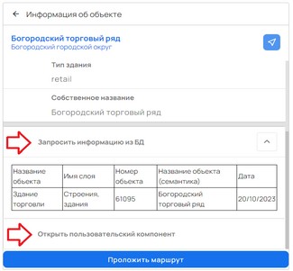Быстрый поиск по найденным объектам При клике на кнопку Данный объект добавляется к списку выделенных. Другим способом выбрать объекты можно, выделив одну или несколько записей в списке и нажав кнопку «Выбрать». Соответствующие выбору объекты выделятся в карте. При клике на кнопке «Информация» При наличии подключенных внешних функций в нижней части окна «Информация об объекте» отображается панель со списком названий функций. Нажатие по элементу осуществляет вызов внешней функции и отображение возвращаемого значения (при наличии).