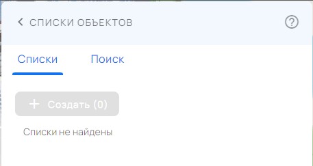 Для создания списка объектов необходимо выделить объекты в карте и нажать кнопку «Создать» на панели «Списки объектов». В таблицу будет добавлена запись с редактируемым названием и индивидуальным маркером.