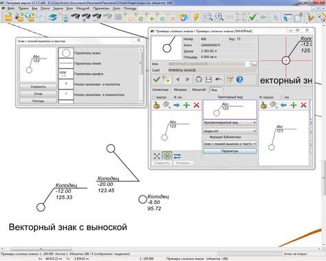 Настройка параметров и отображение примитива «Знак с линией выноски и текстом»